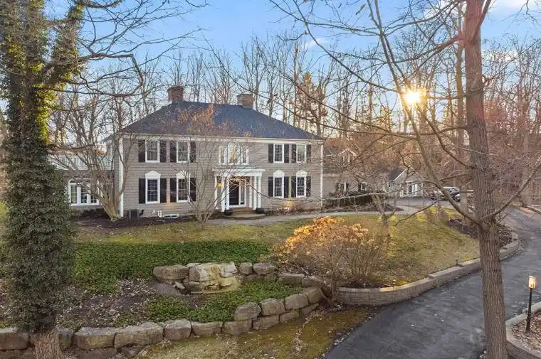 Camelot Hill Estate: A custom-built Georgian Colonial set on 1.2 acres of manicured, tree-lined grounds overlooking winding Lakeshore Road West, just outside the lakeside town of Port Colborne. With over 3,700 sq ft of finished living space, the home commands a striking hillside presence while offering privacy and a peaceful setting. The columned entrance opens to a grand foyer with a sweeping oak staircase, leading into formal living and dining rooms defined by classic architectural details. The main floor also features a private office, a bright Florida room with French doors to the terrace, and a comfortable family room-well suited for both everyday living and entertaining.The kitchen was updated in 2022 with new cabinetry and flooring, blending traditional style with modern function, and includes granite countertops, high-end appliances, and a breakfast area overlooking the grounds. Upstairs, there are 4-5 generous bedrooms and 2.5 updated bathrooms. Restored hardwood floors, two gas fireplaces, and abundant natural light highlight the home’s timeless character throughout.The lower level is unfinished, offering excellent potential to further expand the living space. Major updates include a new roof (2021), new windows and doors (2022), garage doors, lighting, and a new water system. A dedicated internet tower provides reliable high-speed connectivity.The landscaped grounds feature terraces, gardens, and a heated garden shed-ideal for relaxing, gathering, or creative use. 10187 Lakeshore Road is a rare estate offering a serene wooded setting, strong presence, and quick possession.