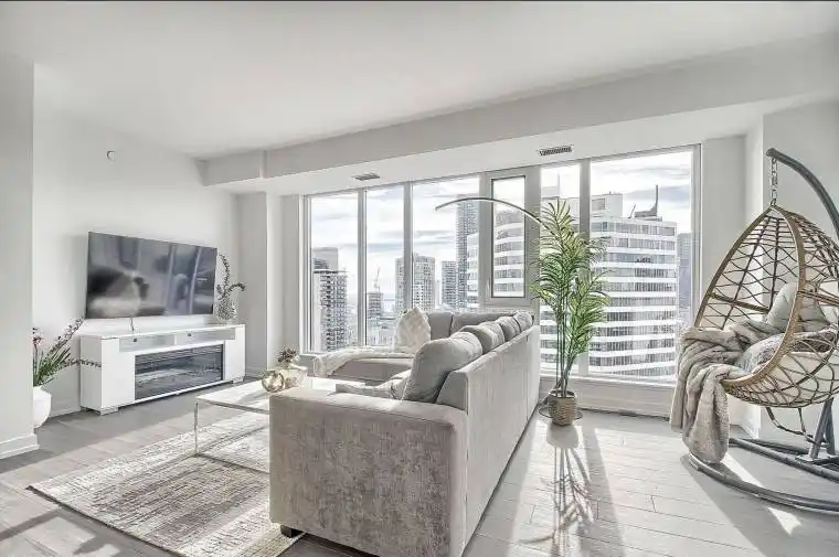 Rarely available, stunning lower penthouse at the prestigious Panda Condominiums offers an exceptional downtown Toronto living experience. Sun-filled and open-concept with floor-to-ceiling windows, the suite showcases breathtaking views of the CN Tower and Lake Ontario – truly iconic city scenery.Featuring 3 spacious bedrooms plus a large den that can easily function as a 4th bedroom, this home offers flexibility rarely found downtown. The balcony is located directly off the Family room, perfect for entertaining or relaxing above the city. The primary bedroom is a standout retreat with a large His & Hers walk-in closet, combining luxury and everyday practicality.Residents enjoy premium amenities including a fitness centre, yoga studio, and library lounge. Unmatched convenience with T&T Supermarket located on the building’s main floor, surrounded by Toronto’s best multicultural dining and vibrant city energy. Steps to Eaton Centre, Dundas Square, TTC subway, IKEA, Healthy Planet, and City Hall, and walking distance to University of Toronto, Toronto Metropolitan University (TMU, formerly Ryerson), and OCAD University.A prime downtown location blended with space, lifestyle, and long-term value – this is the true downtown Toronto experience,High rental potential due to the prime downtown location, proximity to major universities, excellent transit, and access to shopping, dining, and amenities. This suite offers strong and consistent rental rates for both student and professional tenants, making it an ideal investment property with reliable income potential