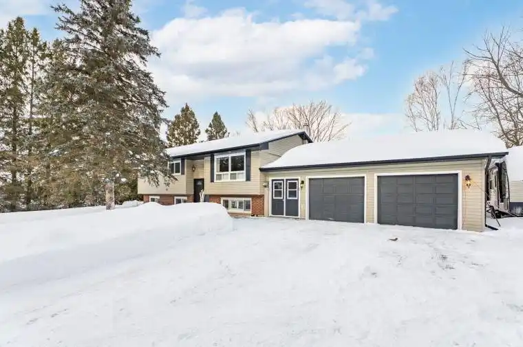 Welcome to a rare opportunity to enjoy the best of both worlds – a peaceful rural setting with quick, easy access to everything Midland has to offer. Just minutes to downtown, the waterfront, parks, trails, restaurants, shops, and essential services, this property delivers country living without sacrificing convenience. Set on a fully fenced and manageable one acre lot, this move-in ready home has been meticulously maintained inside and out. Major components have already been updated, including shingles, roof, furnace, and propane fireplace, and the interior has been thoughtfully updated throughout, offering a truly move-in-ready home with nothing left to do. Inside, the main floor features hardwood flooring throughout with no carpet anywhere in the home. The spacious kitchen is both functional and inviting, offering a breakfast bar, built-in window seating, classic cabinetry, ample storage, and a layout that has been exceptionally well cared for. California shutters add a timeless finish throughout. The updated bathroom and laundry room (2025) provide modern convenience with added storage cabinetry. The bright walk-up basement features large lookout windows, a separate entrance, and excellent potential for a future multi-generational living setup or additional living space. Outside, a circular driveway offers maximum parking, complemented by a two-car garage and plenty of room to enjoy the outdoors. A turn-key property in a sought-after location like this is a rare find, offering space, privacy, and proximity all in one exceptional package.