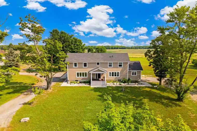 Nestled on 10 acres of agricultural land in the peaceful town of Stevensville, this property brimming with possibilities. This nearly 4600sq. ft. dairy farm offers a unique opportunity for those looking to invest in agriculture, while the detached, three-car garage with foam insulation, a woodstove, and a poured concrete floor provides space for storage, a workshop, or your personal retreat. The property also features two fenced-in and connected 2 -acre pastures, perfect for livestock or farming. The main house is over 3000 sq. ft. of beautifully finished living space and was lifted just two years ago, now sitting on a full 8-foot poured concrete foundation that spans the entire home. Inside, the home features 4 bedrooms and 3 and 1/2 bathrooms, with an open-concept chefs kitchen boasting a large island, pantry, and a bright dining area, all flowing seamlessly into a spacious living room with pot lights, large windows, and a cozy gas fireplace. Additional features include a large mudroom/foyer and a separate office/den with its own entrance, ideal for home-based businesses. A unique touch to the home is the 2 staircases leading to the upper level. A fully self-contained, 1,200 sq. ft. secondary living space offers 1 bedroom, 1.5 bathrooms, and an open-concept living/dining area with quartz countertops and high-end laminate flooring. Accessible from the basement, back deck, or a private side entrance, its perfect for extended family, guests, or rental income. This property has been thoughtfully updated in 2022 with two high-efficiency furnaces. a U/V water purification system installed, a brand new double septic bed, a new well, 2-inch foam insulation, and hardy board siding. Outdoor living is a highlight, with a composite front and side porch, as well as a rear deck featuring a hot tub, perfect for relaxation or entertaining. Whether youre looking to cultivate the land, run a business, or simply enjoy country living, 4692 Gilmore Road has it all!