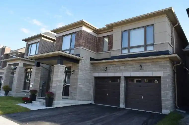 This stunning open-concept model home showcases a modern elevation and impressive 9-foot ceilings on both the main and second floors. Built by the renowned Paradise Homes, this nearly 3,050 sq ft residence is only a few years old and offers premium upgrades throughout. Features include elegant hardwood flooring, a frameless glass shower, a freestanding soaker tub, two fireplaces (electric and gas), 200-amp electrical service, and a city-approved side separate entrance.The thoughtfully designed kitchen boasts extended-height upper cabinets, pots and pans drawers, quartz countertops, a double sink, and stainless steel appliances, including a gas stove with a fridge waterline. Upstairs, the home offers an exceptional layout with five spacious bedrooms, each with its own attached bathroom, closet organizers, pantry space, and the convenience of upper-level laundry.Enjoy outdoor living in the backyard complete with a wooden deck. Ideally located close to Highways 407, 401, and 7, and just minutes from Costco, Durham College, Ontario Tech University, parks, trails, bike paths, restaurants, grocery stores, Delpark Recreation Centre, and several highly rated schools.