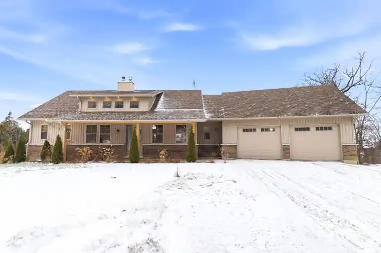 Set on just over half an acre in a quiet lakeside neighbourhood, this exceptional 4-year-old home offers stunning views of Rice Lake and an unparalleled indoor/outdoor lifestyle. A public dock and boat launch are conveniently located within 200 metres, making this an ideal property for boating and lake enthusiasts.Designed with a unique, sun-filled open-concept layout, the home offers approximately 2,400 sq ft of finished living space with 9′ ceilings throughout and a dramatic 15′ vaulted ceiling on the main floor. At the heart of the home is a massive central stone fireplace, complemented by a propane fireplace on the main level and a wood-burning fireplace in the lower level, creating warmth and character year-round.The main floor features a spacious primary bedroom with a private covered porch, a beautifully appointed ensuite, main floor laundry, and abundant storage and closet space. The finished walk out lower level offers two large bedrooms, a full bath, and additional living space ideal for family or guests. Hardwood and ceramic flooring flow throughout the home, adding timeless style and durability.Built for comfort and efficiency, the home boasts super-insulated walls and ceilings, in-floor hydronic heating on all levels, and a propane boiler providing both heat and hot water. Three mini-split units offer supplemental heating and air conditioning.Car, hobby, and recreational enthusiasts will appreciate the oversized four-car over/under garage, complete with a 9,000 lb Atlas two-post hoist, in-floor heat in the lower garage, propane radiant heat in the upper garage, air compressor plumbing on both levels, welder plug, RV hookups, and extensive storage for cars, boats, and campers.With covered front and rear porches, breathtaking lake views, and thoughtfully designed spaces throughout, this remarkable property offers comfort, functionality, and a lifestyle rarely found.