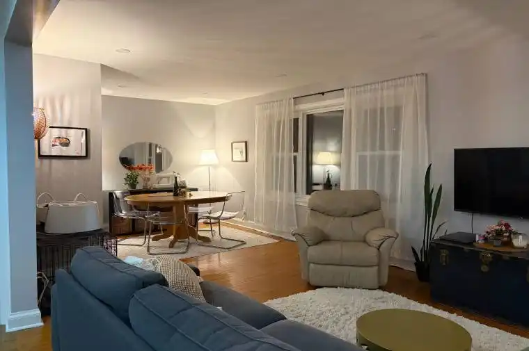 Bright, south-facing open-concept one-bedroom apartment located on the upper floor of a triplex (approximately 700 sq. ft.) with separate entrance. The bedroom measures 11′ x 10′.Features include a space-saving kitchen with ample cupboard storage, a fully renovated bathroom with shower and cabinetry, updated electrical wiring, oversized windows throughout the unit (great natural light for plants), hardwood flooring and portable washing machine. Conveniently located within walking distance to Davisville Subway Station, shops, restaurants, and close to Yonge Eglinton Centre shopping. Situated in a quiet, safe neighbourhood near a park with six tennis courts and all amenities nearby.Parking for one vehicle is included. Tenant responsible for hydro and tenant insurance.