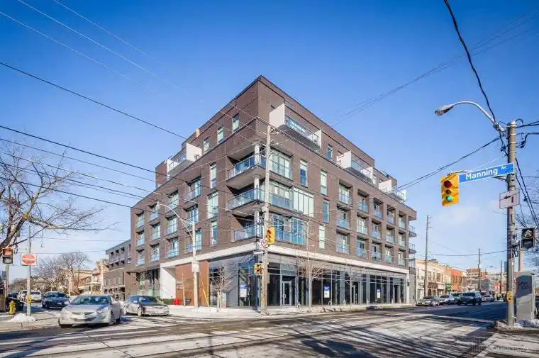 ** UNDER POWER OF SALE** Beautiful 2 Bedroom 1 Bath Condo In The Heart Of Toronto Awaits You At 205 Manning Ave! This Bright Corner Suite Offers A Functional Open Concept Layout With A Large Balcony Providing Access From The Living Room And Both Bedrooms. Enjoy Sleek Modern Flooring Throughout And A Contemporary Kitchen Complete With Built In Appliances, Clean Luxury Finishes, And Plenty Of Natural Light. The Balcony Is Equipped With A BBQ Gas Line And Outdoor Water Line, Perfect For Easy Entertaining. Two Separate Thermostats Offer Added Comfort And Climate Control. Residents Enjoy Access To Fantastic Building Amenities Including A Fully Equipped Fitness Centre, Stylish Party Room, Visitor Parking, Secure Entry, And A Landscaped Outdoor Terrace Ideal For Relaxing Or Hosting Friends. Located In One Of Toronto’s Most Vibrant And Sought After Neighbourhoods, You Are Just Steps To The Shops, Cafes, And Restaurants Of Trinity Bellwoods And Little Italy. Walk To Trinity Bellwoods Park For Green Space And Community Events, Or Explore The Boutiques And Nightlife Along Ossington Avenue. Easy Access To Transit, Dundas Street West, And Queen Street West Makes Commuting Throughout Toronto Simple And Convenient. An Exceptional Opportunity To Own In A Dynamic Downtown Location With Style, Comfort, And Convenience At Your Doorstep.