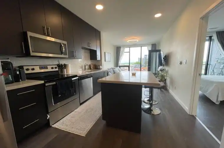 The Midtown Lofts are a premium condominium in an excellent neighbourhood, steps from Google and the vibrant downtown core. This private apartment is situated in a 6-storey building, offering a stylish, functional 1 bedroom, 1 bathroom with a spacious, custom dpuble sided PAX wardrobe walk-through closet, 9 ft-high ceilings, a showcase kitchen with ceiling-height cabinets, a centre island, quartz countertops, a subway-tile backsplash, and stainless-steel appliances. The unit also features a Google Nest, smart plugs, lights, and outlets. Not to mention an in suite front-load washer and dryer, modern light fixture with elegant window coverings. The building amenities include an outdoor terrace with a barbecue, a workout room, and a party room with a full kitchen. Immediate possession is available with a current credit check, employment letter, proof of tenant insurance, and first and last month’s rent required.