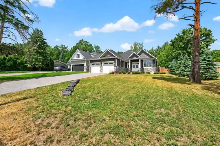 Imagine yourself living in the lap of luxury, surrounded by the finest finishes and most desirable amenities, in this exceptional custom-built open concept house, situated in Barrie’s most sought-after east-end neighbourhood. This magnificent 2019-built bungalow offers an incredible 3940 finished square feet of living space, carefully crafted to provide the ultimate living experience on a large 73.73 X 203.43 Lot. The property’s expansive deep lot is a true oasis, complete with a double car garage, six-car interlock driveway, and a professionally finished backyard haven, featuring a forest canopy, bonfire area, vegetable garden, and tray ceiling porch. Inside, discover a world of elegance, with 9-foot ceilings, big windows, California shutters, and pot lights throughout. The gourmet kitchen is a culinary dream, boasting a sprawling 10-foot central island with quartz countertops, while the family room features a coved ceiling and remote-controlled gas fireplace. The peaceful primary bedroom sanctuary offers a luxurious 5-piece ensuite, heated floors, and a walk-in closet, plus a serene step-out to the porch. Additional highlights include a professionally designed and finished basement, complete with a large recreation room, theater room, two bedrooms, and a 4-piece washroom.