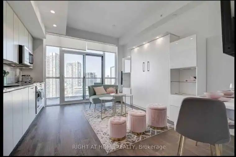 Welcome To Turnkey Penthouse With Exceptional Views! This Designer Studio, Is Ready For You To Move In To. Airbnb Catalogue Vibes. One Of A Kind South Facing Studio Of 375 Sq.Ft. with 10 ft ceilings. This Upper Penthouse Offers Privacy As Well As Unobstructed Spectacular Views Of The Lake & Historic Fort York From Its Oversized Balcony. Custom Made Murphy Wall Bed With Ambient Ligthing And Extra Shelves & Cabinets For Storage, Folding Wall Mounted Desk, Furniture, Artwork And Dinnerware are Included. Steps to Union Station & Lake Ontario. Brand New Building with a multi-purpose Fitness Centre (Cross-fit, Cardio, Weights/Yoga Rooms). 24 Concierge. Sauna/Plunge Pool/Jacuzzi/BBQ/Games Room. Open to SHORT-TERM (2 months +) applicants, STUDENTS, INTERNATIONAL Professionals are welcome. Locker may or not be included.