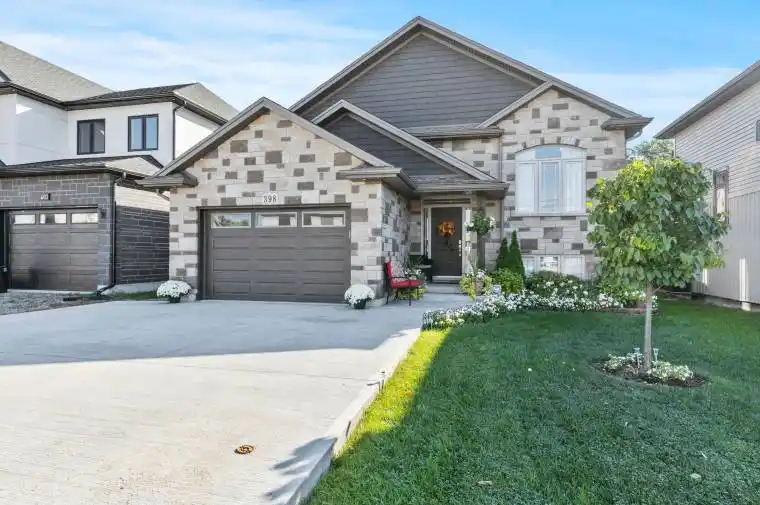 Welcome to the raised bungalow you’ve been waiting for! Built in 2019 this home comes equipped with 5 bedrooms, 3 bathrooms and over 2600 square feet of living space. Situated in one of North Welland’s most desirable neighbourhoods, you’re just seconds from Niagara Street adding the convenience of nearby grocery stores, banks, restaurants, pharmacies, shopping, schools, parks, walking trails, and quick highway access to the entire Niagara Region. From the moment you arrive, pride of ownership is unmistakable. A manicured lawn, landscaped gardens, concrete driveway, and a striking stone-and-siding façade create an inviting first impression. The 1.5 garage includes a side entrance and direct walk-in access to the basement an ideal setup for those seeking in-law potential, rental income, or investment opportunities. Step inside to an open-concept main floor filled with natural light. Cathedral ceilings in the living and dining areas create a bright, spacious feel, while the modern kitchen shines with quartz countertops, a matching backsplash, stainless-steel vent hood, and a walkout to the backyard deck perfect for outdoor cooking and entertaining. The main level features three generously sized bedrooms, each with large closets, including a primary suite complete with a private 4-piece ensuite. Quality finishes are evident throughout: engineered hardwood flooring, pot lights, upgraded trim and hardware, double-pane Pollard windows, and an elegant oak staircase with steel spindles. The fully finished basement is an entertainers dream, offering 9-foot ceilings, oversized windows, a large recreation room, two additional bedrooms, a 3-piece bathroom with a tiled glass shower, plus storage, laundry, and utility space. This move-in ready home combines location, style, and functionality an incredible opportunity in North Welland!