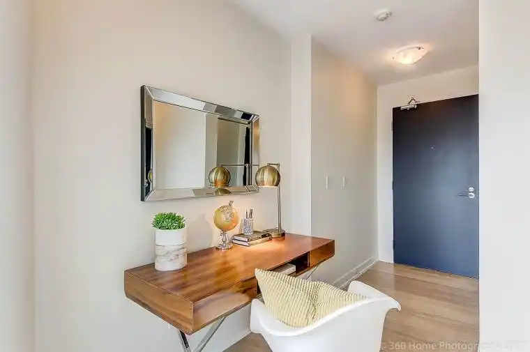 Experience elevated urban living in this stunning 1-bedroom + den corner suite at the sought-after Post House Condos, located in the heart of Toronto’s vibrant St. Lawrence Market neighbourhood. This bright west-facing unit offers spectacular city views and exceptional natural light with exposures to the west, east, north, and south-a rare feature that creates an airy, open feel throughout the space. The suite features 9-foot smooth ceilings, enhancing the modern design and spacious layout. The primary bedroom enjoys a peaceful east-facing view and includes a private ensuite, while the versatile den is ideal for a home office or library space. The contemporary kitchen is outfitted with sleek European-style appliances, stylish finishes, and ample storage, perfect for everyday living and entertaining.