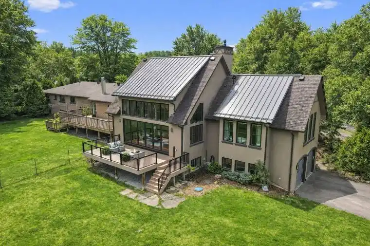 Exceptional Lake view Estate with Two Residences ideal for Multi-Generational Living. Welcome to this rareand remarkable opportunity to own a stunning lake view property featuring not just one, but two self-contained homes nestled on nearly one acre of beautifully landscaped land. The main residence is a warm and inviting 3-bedroom, 3-bathroom bungalow that seamlessly blends classic charm with modern upgrades. The heart of the home is a newly custom-designed kitchen that is truly a chefs dream, featuring high-end finishes, sleek appliances, and a layout built for entertaining. A recently added Chefs Pantry enhances the kitchens functionality and storage space ideal for the culinary enthusiast. Just steps away,the second home is a custom-built 2-bedroom, 2.5-bathroom bungaloft and offers a striking architectural design, complete with soaring cathedral ceilings, floor-to-ceiling windows, and breathtaking lake views.The open and airy interior is flooded with natural light, creating a serene atmosphere that blends seamlessly with the natural surroundings. Every detail was thoughtfully chosen to reflect comfort,character, and timeless elegance. Step outside onto the spacious back deck, a perfect place to unwind and enjoy tranquil summer evenings surrounded by nature. Both homes are equipped with their own attached double garage,ensuring secure, convenient parking and additional storage, while the expansive driveways,offer plenty of space for guests. The expansive basement provides opportunity to add more bedrooms. The large, well-maintained lot presents endless opportunities for outdoor entertaining, gardening, or simply enjoying the peace and quiet. Located just a stone’s throw from the serene Fairy Lake and only a 2-minutedrive to the prestigious Blue Springs Golf Course, this property combines the best of rural tranquility with easy access to premium amenities. Centrally located between Guelph and the GTA. A detailed list of features and upgrades is available.