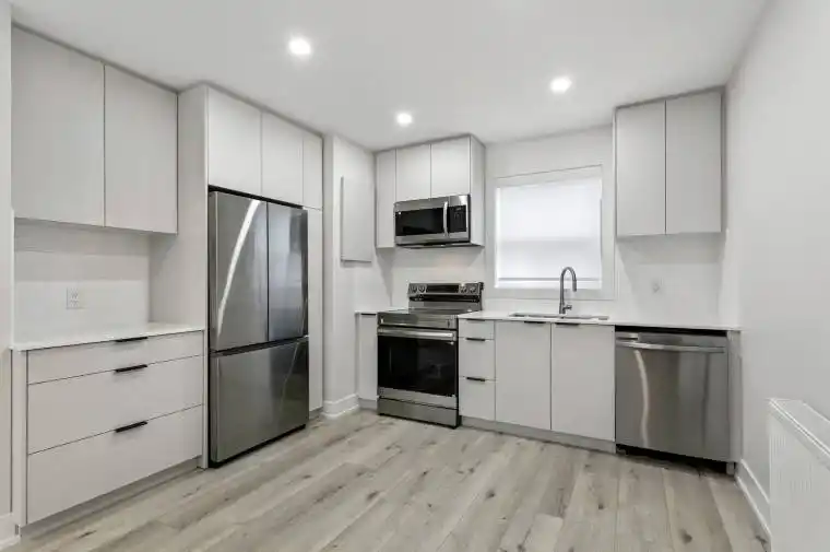 Stunning fully renovated 2-bedroom main floor apartment in prime South Etobicoke, just steps to Lake Ontario and Prince of Wales Park. Located on a quiet residential street in one of Etobicoke’s most desirable lakefront neighbourhoods, this bright and spacious suite offers modern finishes and excellent natural light throughout.The thoughtfully designed layout features a brand new modern kitchen with stainless steel appliances, quartz countertops, modern cabinetry, and stylish finishes, opening into a comfortable living space with pot lights and large windows that create a bright and welcoming atmosphere. Two well-sized bedrooms and a sleek renovated bathroom complete this beautifully updated unit. Enjoy waterfront living just a short walk to Lake Ontario, parks, and scenic waterfront trails, while still being conveniently close to shops, transit, and easy access to the Gardiner Expressway and downtown Toronto. Soon to be a brand new coin-operated laundry located in the building. Surface parking available at the rear of the property (new asphalt scheduled for the driveway and parking).This unit and the building has undergone extensive capital improvements, with further renovations underway or scheduled, including a full renovation of the unit (March 2026) with new insulation, windows, kitchen cabinets and counter-tops, bathroom, doors, lighting, flooring and paint, stainless steel appliances, faucets, vanity, toilet, bathtub, and more. An excellent opportunity to live in a quiet, well-maintained multiplex in the heart of South Etobicoke’s waterfront community. Please note that the photos are of an identical unit one floor above and are for demonstrative purposes to show expected final look and finishes. The unit will be ready for occupancy April 15th and is in final stages of renovations, but can be viewed in person. Ideal for professionals seeking a quiet, well-maintained building close to the waterfront, parks, and transit.