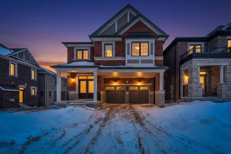 Welcome to Mattamy’s highly sought-after Valleyview Model in the prestigious North Seaton community of Whitevale. This beautifully designed detached home offers a double car garage, 4 spacious bedrooms, 3.5 bathrooms, and 2,691 sq. ft. of above ground living space. Thoughtfully crafted with modern finishes and functional design, the main floor features an expansive great room, bright breakfast area, and formal dining space. Premium upgrades include newly installed pot lights and custom window blinds throughout the main level, along with 12″ x 24″ tile flooring, elegant hardwood floors, oak staircases with metal pickets, smooth ceilings, and oversized windows that fill the home with natural light.The chef-inspired kitchen is equipped with upgraded Samsung Bespoke/sthainless steel appliances, quartz countertops, and a large centre island perfect for entertaining and everyday living. Upstairs, the luxurious primary retreat features a walk-in closet and a sleek glass-enclosed stand-up shower. A shared bathroom with dual stand alone sinks and granite countertops, along with a convenient upper-level laundry room, completes the second floor.This home comes with the Tarion New Home Warranty, plus additional appliance warranty for added peace of mind. Ideally located just minutes from Highways 407, 401, and 412, as well as the Pickering GO Station, offering excellent connectivity for commuters. Walking distance to the proposed new elementary school and surrounded by future-forward community planning, this is a perfect opportunity to own in one of Pickering’s most desirable new neighbourhoods.