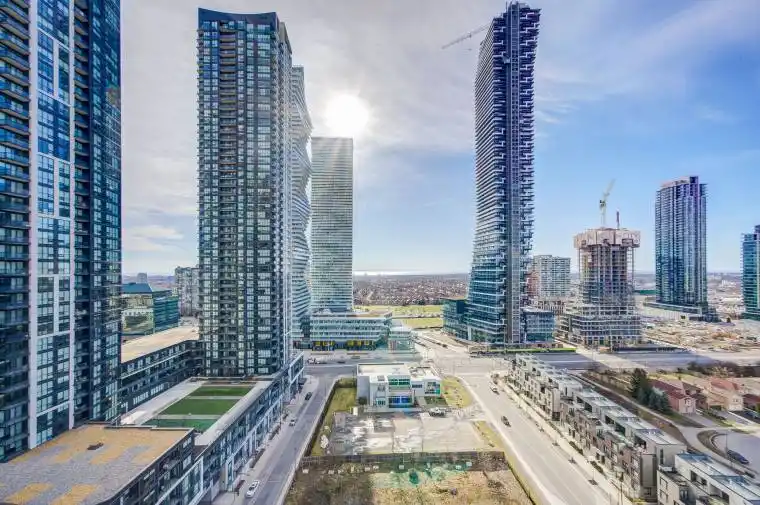Best Location! Bright South-Facing 2 Bedroom + 2 Bath Corner Unit Condo with underground parking and storage locker in the heart of Mississauga * 1 PARKNG + 1 LOCKER INCLUDED * This sun-filled suite features a spacious open-concept layout and a wrap-around balcony with unobstructed south exposure, offering impressive city views and distant lake views. Thoughtfully designed split-bedroom layout, with the two bedrooms positioned on opposite sides of the unit, providing excellent privacy and minimal disturbance-perfect for families, guests, or a home office setup. Freshly painted throughout and featuring a modern upgraded kitchen with stainless steel appliances, stylish cabinetry, and contemporary finishes.Enjoy fantastic building amenities, including concierge service, a terrace with BBQ area, gym, theatre room, party room, and more.Unbeatable location within walking distance to Square One, Celebration Square, and the Living Arts Centre, and just a 5-minute walk to the newly opened Food Basics on Confederation Parkway. The area will also benefit from the upcoming Zonta Meadows Park Redevelopment, featuring sports facilities, community gardens, playgrounds, a skate park, outdoor fitness areas, and picnic spaces.