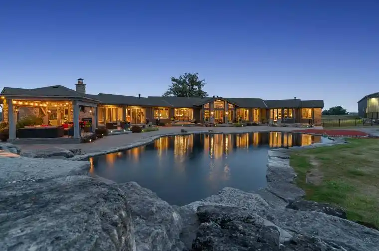 Set on over 120 acres of stunning countryside, this exceptional estate offers a rare combination of privacy, recreation, and luxury living, just minutes from Cambridge, Guelph, and Kitchener-Waterloo. The property is designed for year-round enjoyment, featuring two incredible ponds -one a swim pond perfect for cooling off on warm summer days, and the other a stocked fishing pond with a sandy beach and waterfall, creating a truly resort-like setting at home. Scenic trails wind throughout the property, offering endless opportunities to explore, relax, and enjoy the peaceful natural surroundings. The property also includes a heated 4,000 sq. ft. detached building with in-floor heating, offering incredible versatility for a workshop, car collection, equipment storage, hobby space, or recreational use. The custom-built stone bungalow offers an impressive 10,454 sq. ft. of finished living space, including 6,505 sq. ft. on the main floor and a fully finished 3,949 sq. ft. lower level. Inside, soaring ceilings, skylights, and hand-chipped stone accents create a warm and inviting atmosphere, while natural wood details add character throughout. At the heart of the home is a spectacular gourmet kitchen featuring Viking Professional appliances, Silestone quartz countertops, striking Douglas fir beams, and dual islands designed for gathering and entertaining. The spacious dining area seats 14 and overlooks the picturesque ponds and surrounding landscape. An indoor grilling area with heated floors makes entertaining effortless in every season. The primary suite is a private retreat with direct access to the swim pond and a spa-like ensuite complete with a jacuzzi tub beside a cozy gas fireplace. The fully finished lower level is designed for relaxation and entertaining, offering a spacious recreation area, full bar, billiards space, wine cellar, and a private cinema room. A truly one-of-a-kind property where luxury living meets the beauty of nature.