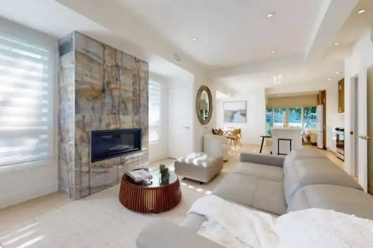 Welcome to this spacious, 4-bedroom, 3-bathroom detached family home. Available for Short Term or One-Year Option – furnished or unfurnished. The front entrance opens up to a luxurious living room with a fireplace, a dining area, an Architectural Digest-inspired powder room, a striking modern kitchen that flows seamlessly into the bonus family room and backyard. It’s a perfect space forfamily living or elegant soirées. The cozy gas fireplace provides a warm welcome forconversation. The 2-tone kitchen with an island that seats 3 is the heart of the ground floor.The dining area is next to the kitchen and a beverage center. The family room overlooks a serene backyard through the large sliding glass doors-extending your living space and connection to nature.