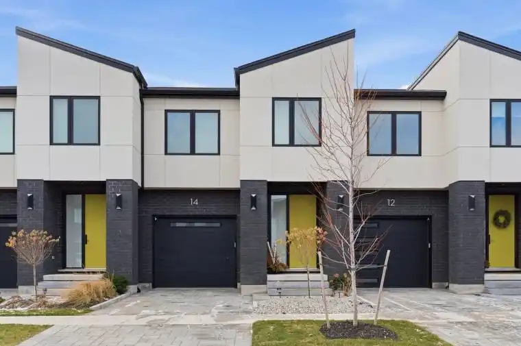 Welcome to 14 Arsenault Crescent in Fonthill, located in the Townhouse Collection at Willow Ridge, built by Rinaldi Homes. This two-storey townhome offers over 2,000 sq ft of finished living space with 3 bedrooms, an upper loft, 2.5 bathrooms, and a finished basement. The exterior presents a sharp modern look, while inside the home opens with 9 ft ceilings, 8 ft doors, engineered hardwood floors, crown moulding, and pot lights throughout the main level. The open layout connects the living, dining, and kitchen into one functional space. The kitchen features quartz countertops, white cabinetry, tiled backsplash, stylish hardware, LG appliances, and a walk-in pantry. A built-in bar with a bar fridge adds a great touch for hosting. The main hallway includes a powder room, garage access, and sliding doors leading to a covered rear deck finished with Trex boards. Below, a large concrete patio extends the outdoor living space with a gas BBQ hookup, privacy glass, glass railings, and a sizeable fenced yard. These upgrades are already completed, so the space feels finished from day one. Upstairs, the loft provides flexible space for a home office, media room, or play area. The primary bedroom features upgraded hardwood floors, a walk-in closet, and a 3-piece ensuite with double vanity and quartz counters. Two additional bedrooms offer large windows and double closets. The finished basement adds another living area with luxury vinyl plank floors, fluted accent walls, pot lights, an egress window, and a built-in entertainment hub. The home also includes a high-efficiency furnace, an on-demand water heater, and the balance of the Tarion warranty. Located in a prime Fonthill setting within walking distance to the Steve Bauer Trail and the downtown core with restaurants, cafés, a brewery, and community events. The Meridian Community Centre, Highway 20 amenities, and top-rated schools are all nearby. Take the 3D tour and schedule your viewing!