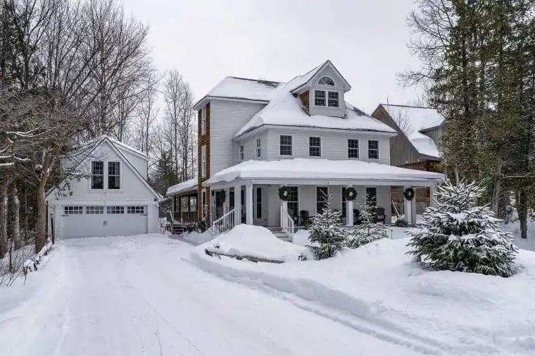 Secluded Retreat in Craigleith 6 Bed, 3.5 Bath with a Spa-Like Backyard. Nestled among the trees and set back from the street, this stunning home offers a perfect blend of privacy and convenience. A picturesque creek with a charming walking bridge welcomes you to this serene escape in the heart of Georgian Woodlands. Inside, the thoughtfully designed layout features six bedrooms and 3.5 bathrooms, ideal for family living and entertaining. The open-concept kitchen and dining area create a warm, inviting space, while the private third-floor primary suite boasts vaulted ceilings, an en suite bathroom, and a peaceful retreat from the rest of the home. Step outside to a spa-like backyard, where a covered deck, hot tub, sauna, and cold plunge invite relaxation year-round. Gather around the fire pit under the stars for unforgettable evenings. A separate two-car garage with a finished flex space above provides endless possibilities for a home office, gym, or guest suite. Conveniently located between Collingwood & Thornbury, this property is just minutes from Craigleith and Alpine Ski Clubs, Northwinds Beach, and a five-minute drive to Blue Mountain Village. Whether you seek adventure or tranquility, this home offers the best of both worlds. Schedule your private viewing today!