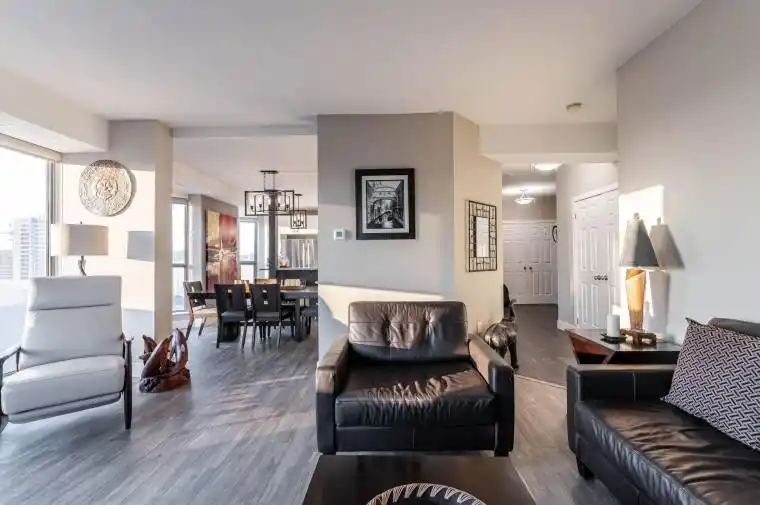 Fantastic Bentley Place!! Once you come in you wont want to leave. Great west Hamilton location. Panoramic views of city escarpment and lake Ontario. Beautiful open living, dining and kitchen area with 9′ foot ceilings. Kitchen , baths and most flooring renos done since 2020. Kitch Island 3′.5″ x 8′ Accent LED lighting throughout. Wrap around balcony off living room. 2nd Balcony from primary bedroom with ensuite bath. Furnace and central air replaced in 2020.Windows and sliding doors replaced March,2025. One excusive underground parking spot. A must to view.