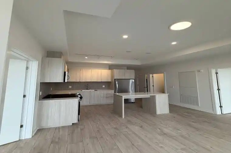 Welcome to Unit 817 at Mile & Creek 2 by Mattamy Homes – a brand new, never-lived-in penthouse residence in the heart of Milton, where modern design meets serene natural surroundings. Perched on the top floor, this stunning two-bedroom suite offers unmatched privacy with no neighbours above or beside you – a rare and highly sought-after feature. Step outside to your expansive 100+ sq. ft. private balcony, seamlessly extending your living space and offering open, unobstructed views over a quiet low-rise neighbourhood – perfect for morning coffee, dining, or unwinding at sunset. Inside, soaring 10-foot ceilings elevate the entire home, creating a bright, airy ambiance throughout the thoughtfully designed open-concept layout. The stylish L-shaped kitchen is both functional and elegant, complete with a spacious island and full-size stainless steel appliances – ideal for everyday living and entertaining alike. The primary bedroom retreat features a walk-in closet and a spa-inspired ensuite with an upgraded frameless glass shower, delivering both comfort and sophistication. Additional refined touches include frameless mirrored sliding closet doors at the foyer, enhancing the sleek and seamless entry experience. Enjoy the added convenience of a dedicated locker for extra storage, and the flexibility of a vacant unit that’s easy to show anytime. Whether you’re two professionals seeking a stylish shared space or a young family looking for comfort and tranquility, Unit 817 offers the perfect balance of privacy, luxury, and lifestyle. Come experience it for yourself – this is penthouse living done right.