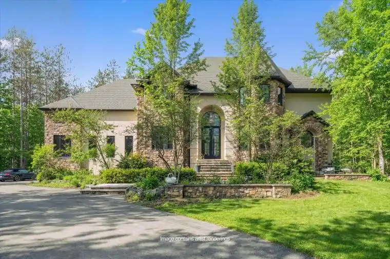 Welcome to a home where country serenity meets contemporary elegance. Set on just over 2 acres of lush, tree-lined property, this exceptional 5-bedroom, 6-bath residence offers a rare blend of modern luxury and natural beauty-creating a truly private and picturesque retreat. Thoughtfully designed with clean architectural lines and an open-concept layout, the home is filled with natural light, seamlessly connecting the indoors with the surrounding landscape. Every detail has been carefully considered to enhance both everyday living and effortless entertaining. At the heart of the home, the gourmet kitchen is a true showpiece-featuring top-of-the-line appliances, abundant storage, and a striking waterfall island that invites gathering and connection. The living area is equally impressive, with soaring ceilings and expansive windows that frame breathtaking views of the backyard oasis. Whether hosting guests or enjoying a quiet evening in, this space offers warmth, comfort, and a constant connection to nature. Step outside to the expansive deck-perfect for morning coffee or long summer evenings under the open sky. The heated saltwater pool introduces a resort-like feel, creating the ultimate setting to relax and unwind. Surrounded by mature trees and open green space, the property offers a sense of peace and privacy that is truly unmatched. Beautiful in every season, the landscape transforms throughout the year-from vibrant autumn colors to peaceful winter snowfall, and the lush greenery of spring and summer. Thoughtfully designed to suit every stage of life, the home features a stunning main floor primary suite, along with four generously sized bedrooms on the second level. Ideally located just minutes from two world-class equestrian facilities and some of the most scenic hiking trails in Southwestern Ontario, this property also offers convenient access for commuters, with easy routes to Pearson International Airport and GO Transit connections to downtown Toronto.