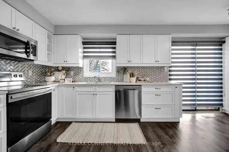 Offers welcome anytime. Beautifully maintained 3 bedroom family home in the highly desirable Maple Ridge community of Pickering. A stamped concrete walkway creates a warm first impression as you arrive. Inside, the home has been freshly painted and features new, modern laminate flooring that flows effortlessly throughout the main level, creating a bright and cohesive living space. The newly renovated kitchen is filled with natural light and thoughtfully designed with abundant cabinetry, a wall to wall pantry for exceptional storage, and a walk-out to the spacious backyard. Step outside to enjoy a private deck and gazebo – ideal for entertaining or relaxing with family and friends. Upstairs, generously sized bedrooms offer beautiful hardwood flooring. The primary bedroom is bright and inviting, complete with a walk-in closet. The updated main bathroom showcases a sleek glass shower for a contemporary finish. The fully finished basement extends your living space with pot lights, ample storage, and a spacious laundry area. Ideally located close to schools, parks, everyday amenities, Pickering Town Centre, recreation centre, with quick access to Highway 401 and the Pickering GO Station, this move in ready home offers exceptional convenience in a family friendly neighbourhood. A fantastic opportunity to settle into one of Pickering’s most sought after communities!