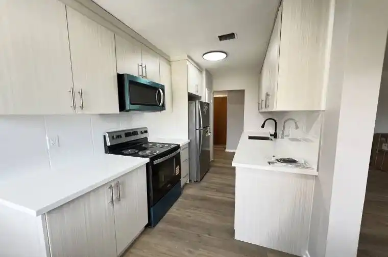 Spacious 2 Bedroom 1 Bathroom Apartment. Renovated unit with new appliances, In-Suite Washer and Dryer, new floors, and freshly painted. Featuring Bright Interiors And A Fully Upgraded, Contemporary Kitchen W/ Quartz Counter Tops, Stainless Steel Appliances And ample Cabinetry! Large patio with lots of natural light throughout unit. Just Steps To TTC, Parks, Schools, And Restaurants! Minutes To The DVP & Hwy 401, Eglinton Square Shopping Centre, Walmart, Winners, Lowes, Michaels, Cineplex Odeon And More!