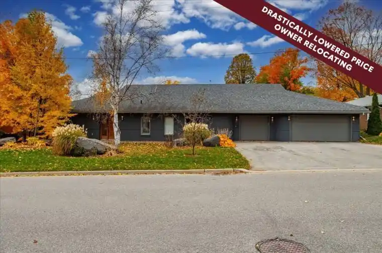 PRICE DRASTICALLY LOWERED…OWNER RELOCATING: Unique Custom Sprawling Modern Bungalow with “Inground Pool”, and triple car garage – ideally located in Barrie’s East Ends Exclusive Area of Fine Homes situated on a 110ft x 185ft lot. This home exudes curb appeal, and interior beams with sophisticated architectural beauty and designer custom finishes. Features5 bedrooms, 3 bathrooms, and 10ft ceilings. The very bright open concept layout offers over 3000sqft of living space on one level no stairs and is wheelchair accessible. The kitchen is a chefs dream, complete with a large island, quartz counters, pot filler tap, stainless steel appliances & gorgeous tile backsplash and large pantry. The formal oversize dining area looks amazing with a round table. Removal of the two bedrooms behind the garage will present a large family room of 20’4″ x 20’10”. The spacious primary bedroom has an ex-large walk-in closet & 5-piece ensuite with double sinks, glass shower & soaker tub. Enjoy outdoor activities on the canopied patio which allows for all year around barbecuing. The massive beautiful landscaped fenced yard has a (19′ x38) gas heated inground pool- with a 5ft deep end and a slide, installed 2 years ago. The double garage has an additional side by side single garage with inside entry to the home. Walking distance to nature trails, downtown, shops and restaurants; close proximity to RVH, Kempenfelt Bay, makes this is a perfect family home.