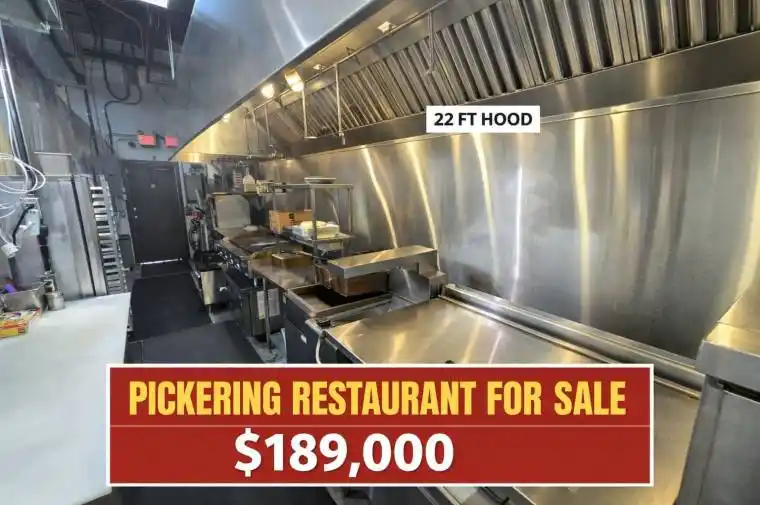 Great opportunity to take over a well-located restaurant at the busy corner of Altona Road and Kingston Road in Pickering. The space is about 1,900 sq. ft. and fully equipped with a commercial kitchen, including a 22-foot hood, walk-in cooler, freezer, and ample prep space for high-volume cooking. The layout is flexible and works for almost any cuisine. There’s a garage door for easy deliveries and plenty of customer parking. Located in a high-traffic plaza surrounded by major retailers, popular restaurants, and strong residential neighbourhoods. Rent is $4,992 per month, secured at the same rate until August 2031.