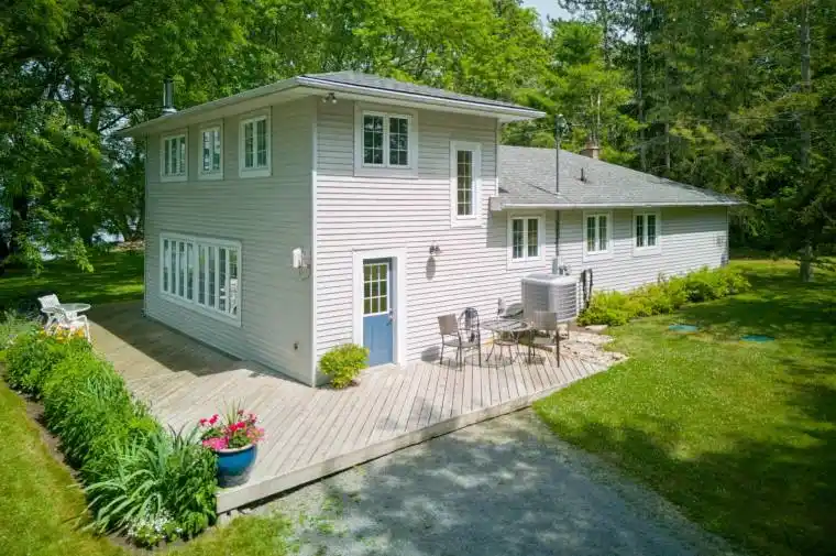 Set on just over 0.6 acres with more than 163 feet of clean Lake Ontario shoreline, this Amherst Island waterfront property offers a rare combination of privacy, usable shoreline, and excellent boating access with a north-east exposure sheltered from prevailing southerly and westerly winds. The 90-foot rolling steel dock extends into deeper water and is well-suited for sailboats. Launch, dock, lift (lift not included), and haul out directly from your own property. With open water and steady conditions along this shoreline, it’s an ideal setting for sailors, as well as kayaking and canoeing around Amherst Island. There’s also a mooring nearby. The lot is well-treed and gently landscaped, with multiple outdoor spaces to enjoy nature, including a large deck, a screened porch overlooking the lake, and a campfire area near the shoreline. Inside, the home is bright and functional. The main floor offers a large kitchen, family room, and a sunroom that serves as the summer living and dining space, bringing in lake views. Two bedrooms, a full bathroom, and main-floor laundry support easy one-level living. In the summer, the screen porch will be a popular place to relax. Upstairs are two additional bedrooms and a second full bathroom, providing space for family or guests. A separate bunkie offers flexible use as a guest space, studio, or quiet retreat. The detached two-car garage and workshop is ideal for projects, storage, or toys. This home features a 200-amp service, a whole-house generator, and a 50-amp EV charger outlet. Located just a short ferry ride from Millhaven, Amherst Island is one of Eastern Ontario’s best-kept secrets. Known for its welcoming community, natural beauty, and quiet lifestyle, the island offers a rare opportunity to enjoy waterfront living just 25 minutes from Kingston.