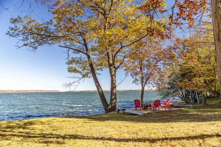 Experience the beauty of 11858 Loyalist Parkway, a spectacular waterfront opportunity to be treasured for generations. Minutes from Picton, enjoy 4.88 acres of park-like property, with a rolling landscape and an abundance of shagbark hickory trees. Approximately three acres fronting on the water are nice and level, sparking imagination for the possibilities. Enjoy 196.34 ft (approx) of clean, pebble shoreline on Picton Bay, with captivating views of the forested shores of Adolphustown across the bay. There is an easy entry waterfront, with a private boat launch and dock system. The view is simply breathtaking! The well maintained home has a steel roof, newer siding, and boasts extensive updates (ask for list), a sunlit family room with a cosy wood burning stove, and separate living spaces. There are 3 bedrooms, one full bath and a den on the second floor. The walkout lower level has a full bath, living room and bedroom, perfect for guests or generational living. Outside, the oversized driveway features two entrances onto Loyalist Parkway for easy access and ample vehicle parking. The driveway extends past the home allowing drivable access to both the back yard and waterfront areas. The backyard is an oasis to explore, featuring extensive decking, a landscaped fire pit, and an updated homegrown raised garden system. Treat yourself with homegrown food, and unwind under the stars as you enjoy a crackling fire. The detached 1.5 car garage and detached shed provide excellent storage. The property includes a tranquil forest area that is well maintained, with large oak and maple trees. A beautiful traditional laid-stone wall running partially down the property adds intrigue. This property, with its large unbuilt waterfront area presents a unique opportunity, and endless possibilities that include ample privacy. A complete list of updates and negotiable chattel is available. Visit today and you too can “Call the County Home!”
